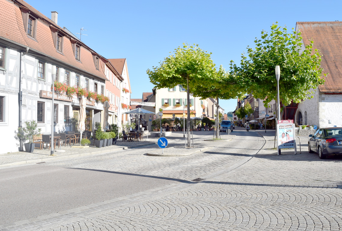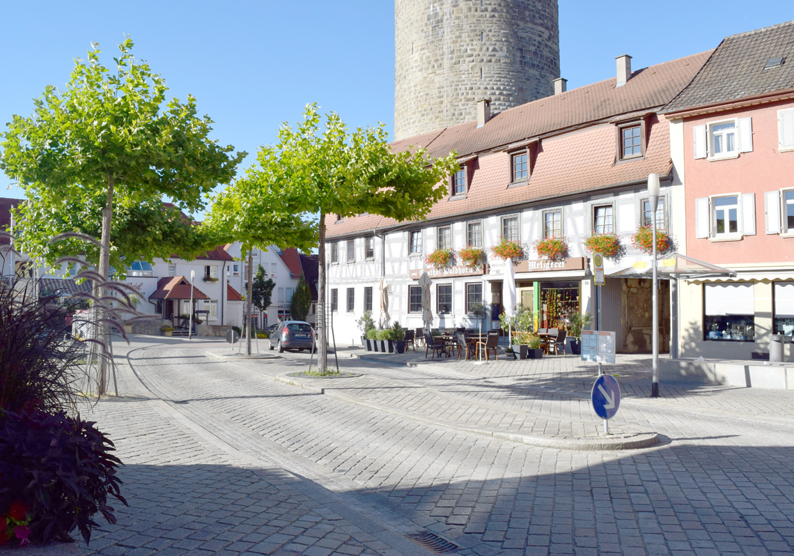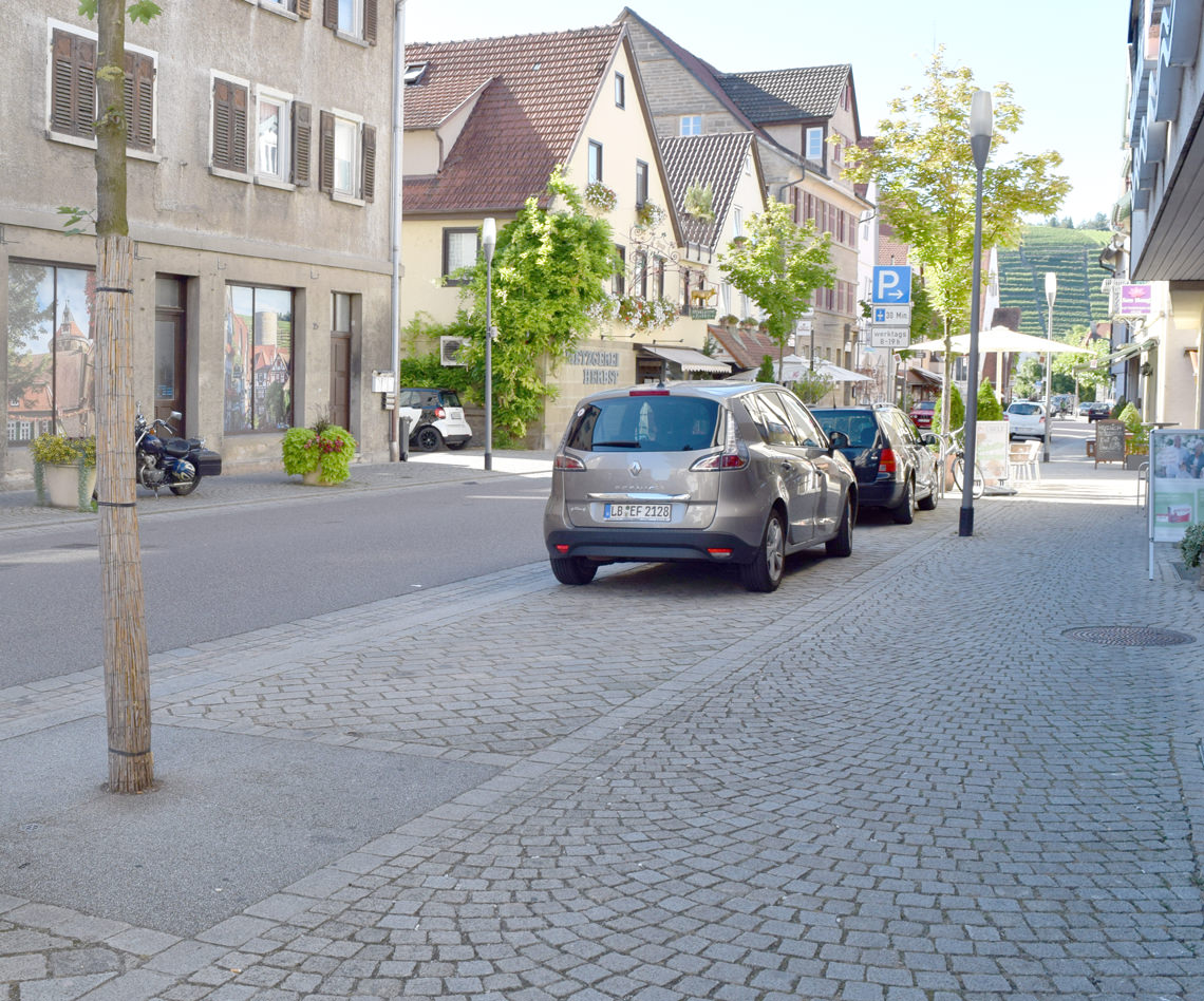 Nachdem die Bundesstraße mit dem Bau der Ortsumgehungsstraße und dem Tunnelbau aus der Stadtmitte verlagert wurde, nutzte Besigheim die nun vorhandenen Potenziale für die Neugestaltung der Ortsdurchfahrt im historischen Stadtkern Besigheims. Die Gehwege konnten verbreitert werden, in Teilbereichen wurden großzügige Aufenthaltszonen vor den Geschäften geschaffen. Restaurants können nun im Straßenraum bestuhlen, das Einkaufen wird durch angebotene Parkplätze verbessert. Der Kelterplatz erhält duch einen Brunnen und durch vier große Platanen Aufenthaltsqualität und Athmosphäre.