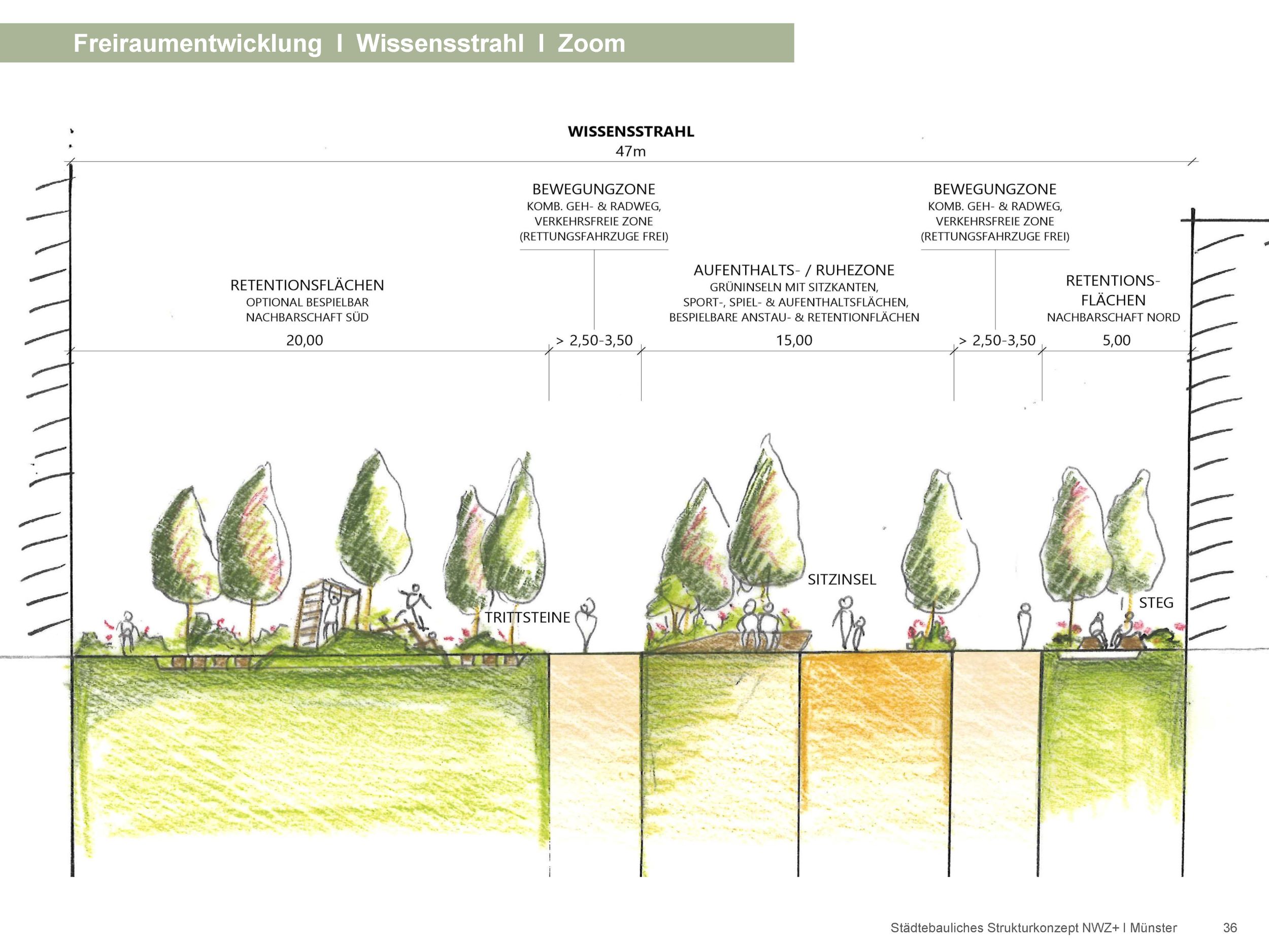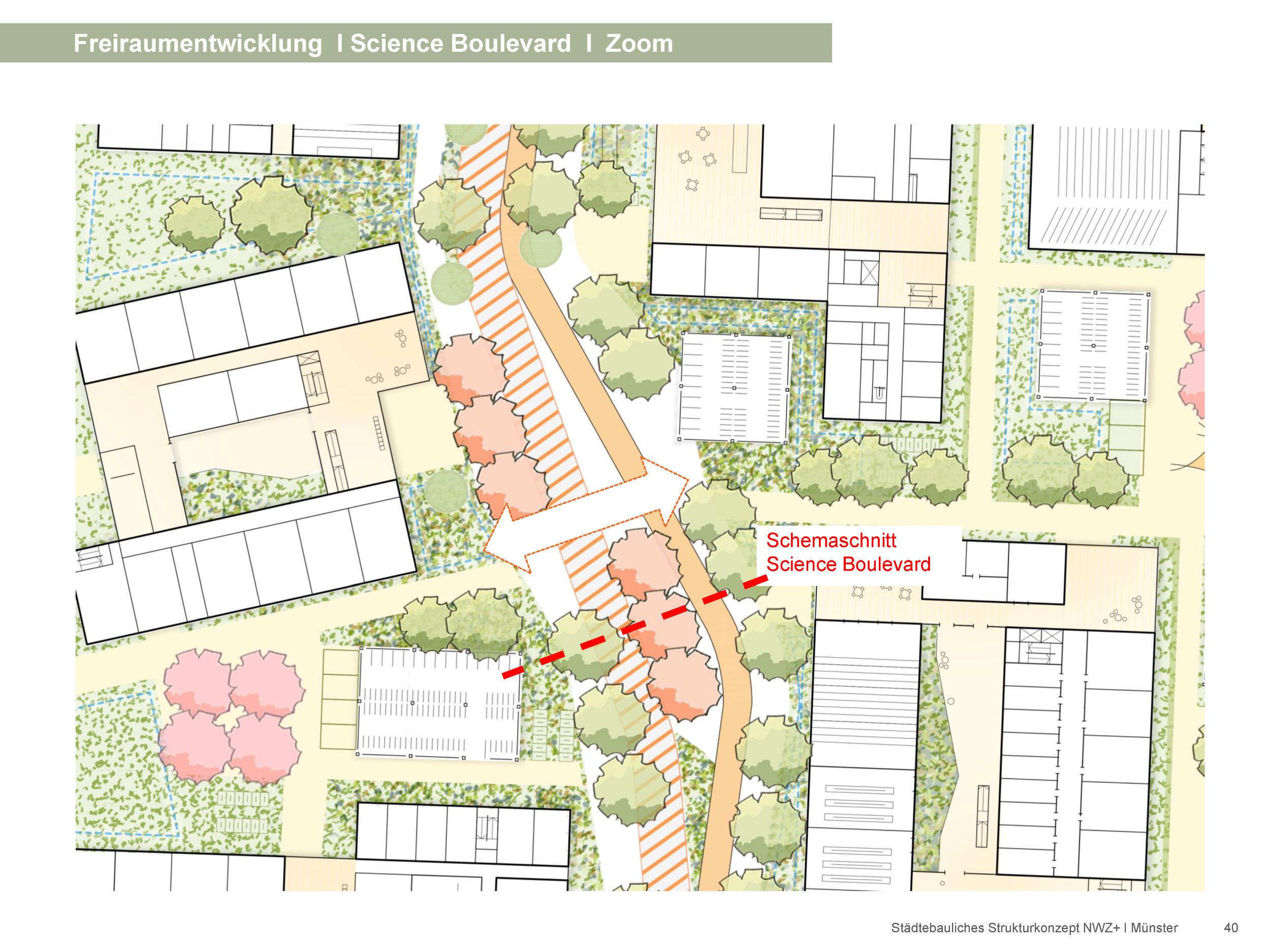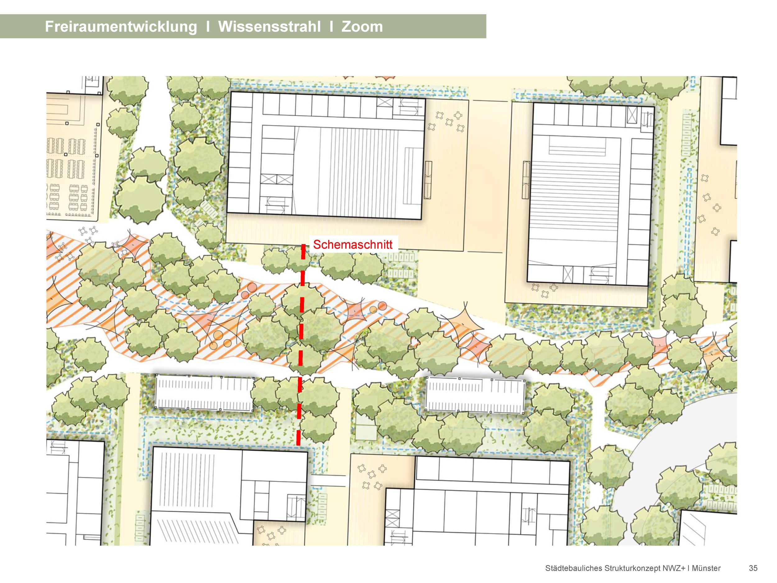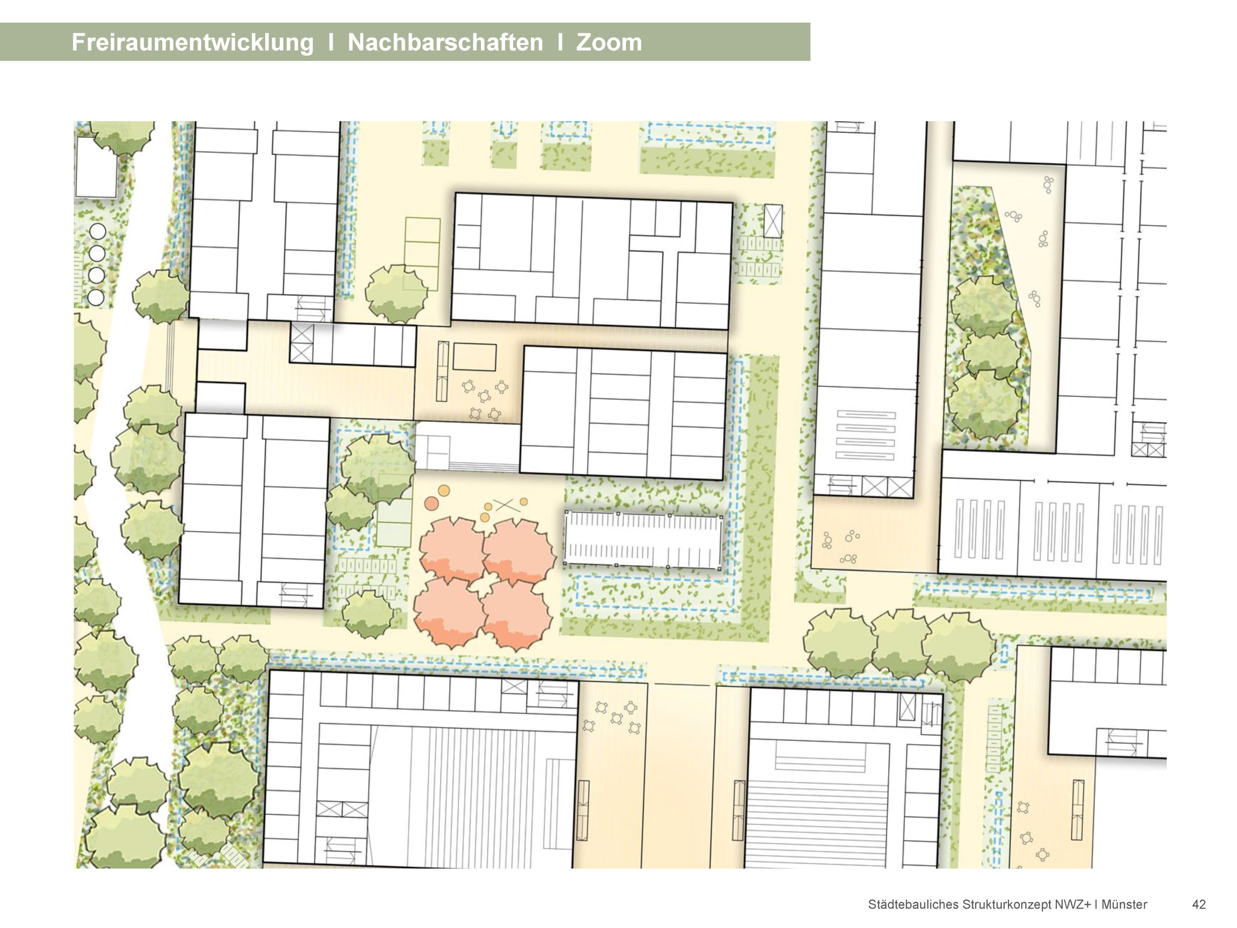Ziel des städtebaulichen Strukturkonzepts NWZplus ist es, die hier bereits praktizierte Vernetzung unterschiedlicher Akteure weiter zu intensivieren und ein durchmischtes, lebendiges Stadtquartier zu entwickeln, das rund um die Uhr belebt ist.