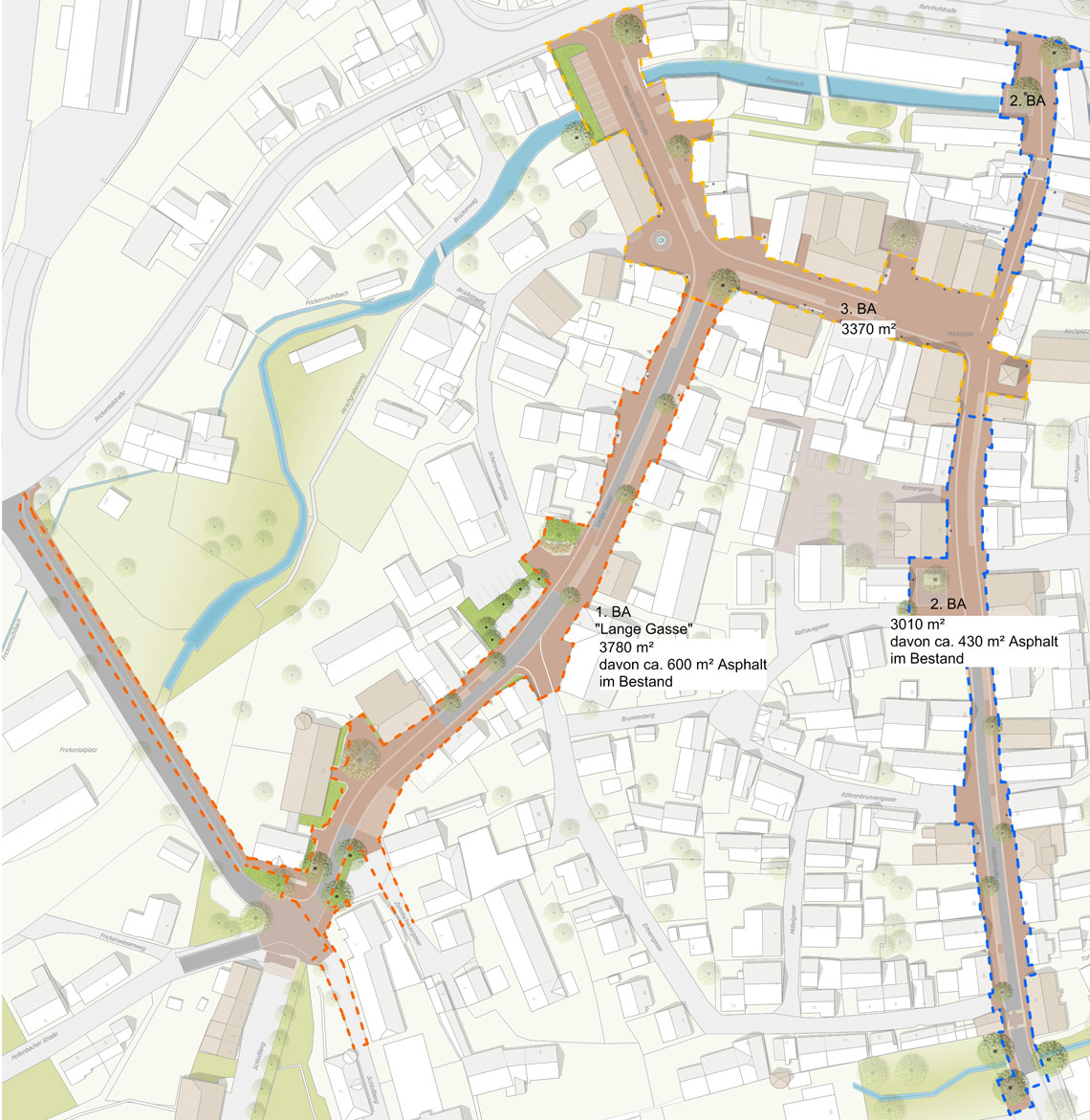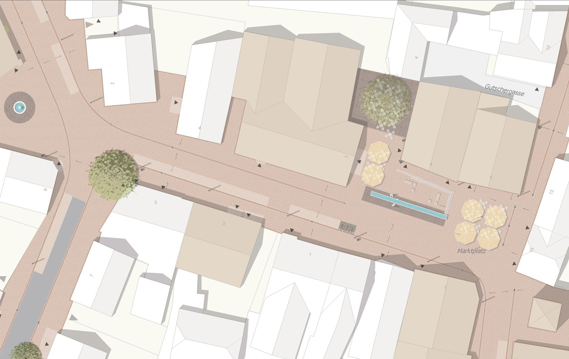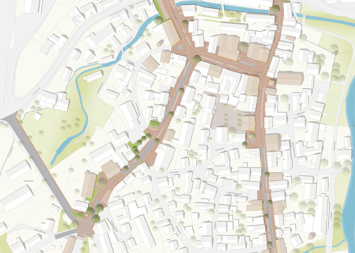 Mehr Aufenthaltsqualität soll insbesondere an zentralen Bereichen entstehen, indem auf die Plätze im Stadtkern ein besonderes Augenmerk gelegt wird. So erhält der Marktplatz, der Rathausplatz, der Le-Plessis-Bouchard-Platz, der Schimmelturmplatz sowie der Platz an der Alten Schule eine Neugestaltung.