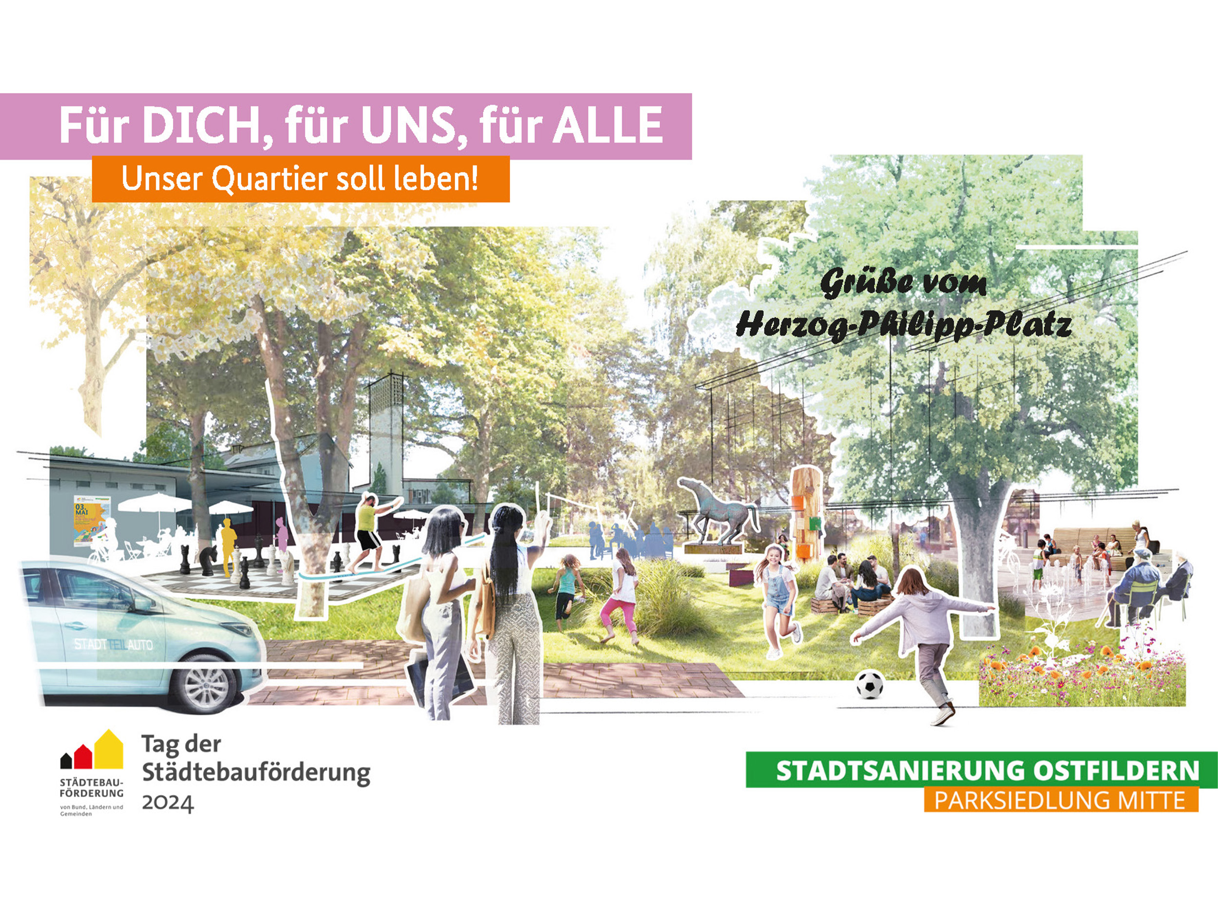 Der Herzog-Philipp Platz bildet das Quartierszentrum des Stadtteils Parksiedlung in Ostfildern. Der Platz besitzt allerdings aktuell den Charakter einer Durchfahrtsstraße mit beidseitigen Parkmöglichkeiten und soll daher umgestaltet werden.