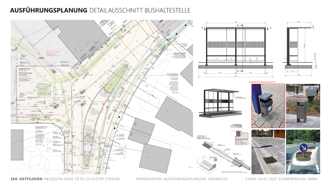 Im Rahmen der Planung wird sowohl die Bushaltestelle, als auch der Straßenraum der Otto-Schuster-Straße/ Ludwig-Jahn-Straße grundlegend neuorganisiert.