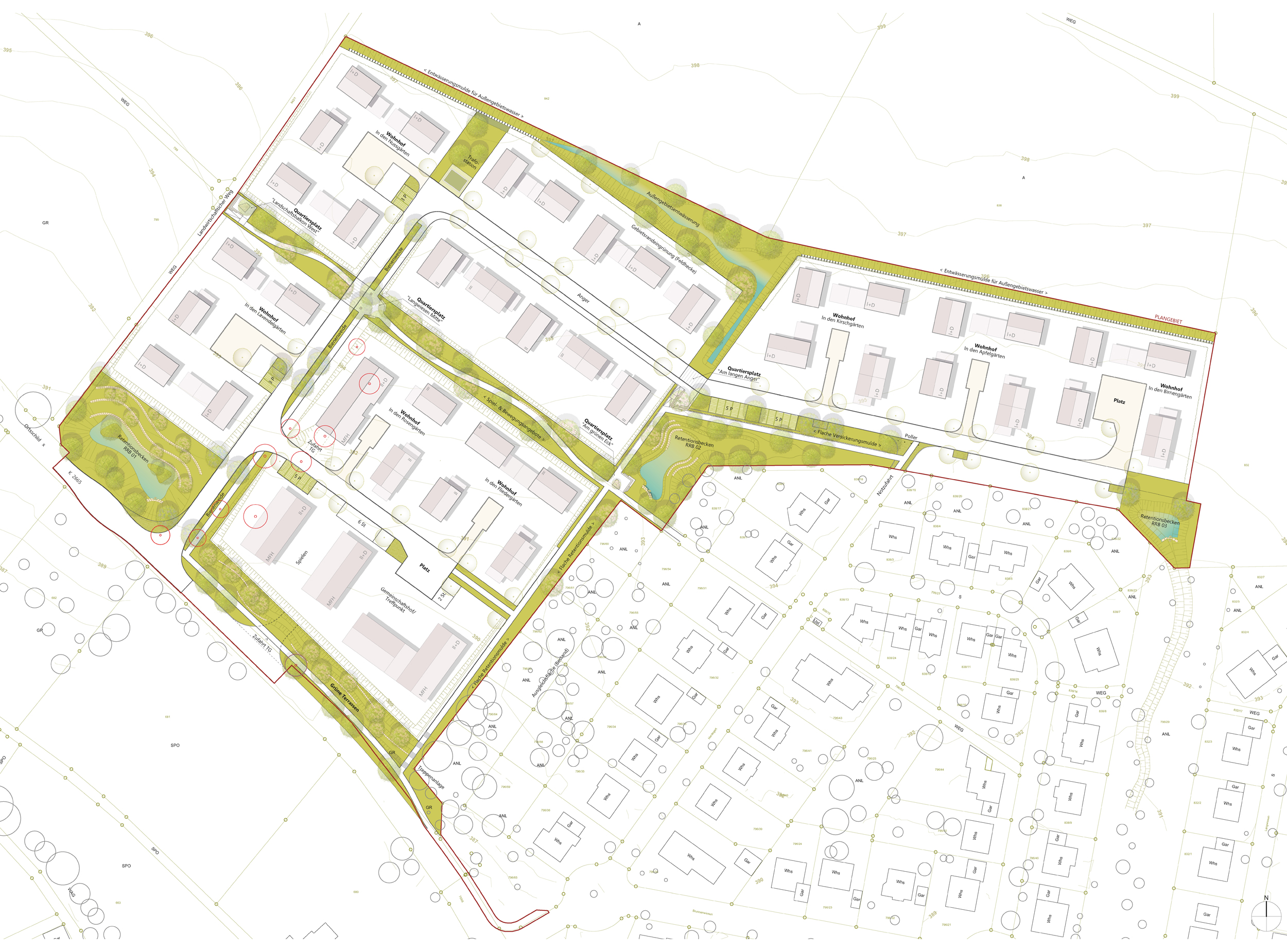 Es soll ein Wohngebiet mit unterschiedlichen Haustypologien entstehen, welches an ein bestehendes Wohngebiet anschließt. Durch kompakte Grundstückszuschnitte und verdichteten Wohnungsbau steigen die Anforderungen an die Frei- und Grünflächen in einem Quartier. Bei der Planung soll daher darauf geachtet werden Bereiche einzuplanen die Nachbarschaften fördern sowie eine hohe Aufenthaltsqualität aufweisen. Die öffentlichen Grünflächen im Quartier sollen insbesondere der Naherholung dienen, den Übergang vom Siedlungsbereich in die Landschaft gestalten sowie die Nahtstelle zu dem angrenzenden Bestandsgebiet „Brunnenwiesen“ bilden.