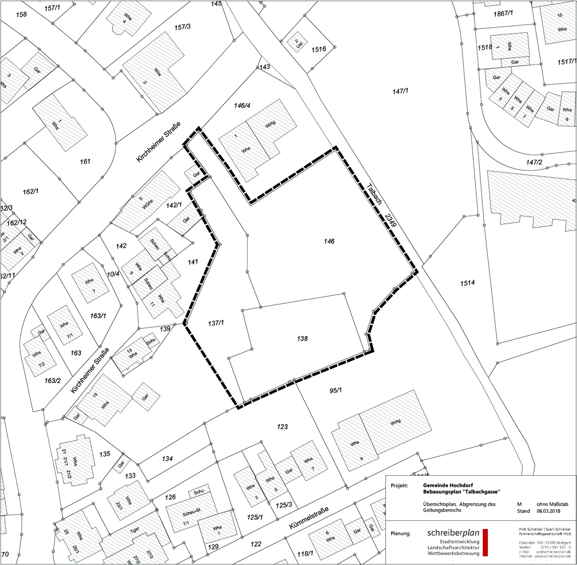 Der Gemeinderat der Gemeinde Hochdorf hat am 20.03.2018 in öffentlicher Sitzung den Aufstellungsbeschluss für den Bebauungsplan mit Satzung über örtliche Bauvorschriften "Talbachgasse" im beschleunigten Verfahren gem. § 13a BauGB (Bebauungsplan der Innenentwicklung) gefasst.