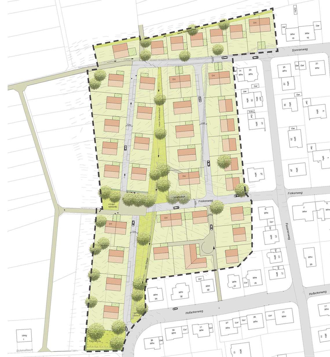 Für das neue Wohngebiet "Hofäcker IV" auf einer 2,6 Hektar großen Fläche im Nordwesten der Gemeinde Notzingen wurde ein städtebaulicher Entwurf und später der Grünordnungs-plan erarbeitet. Die CEF-Maßnahmen für den artenschutzrechtlichen Ausgleich wurden durchgeführt. Aktuell befinden sich die Erschließung sowie die Freianlagen im Bau.