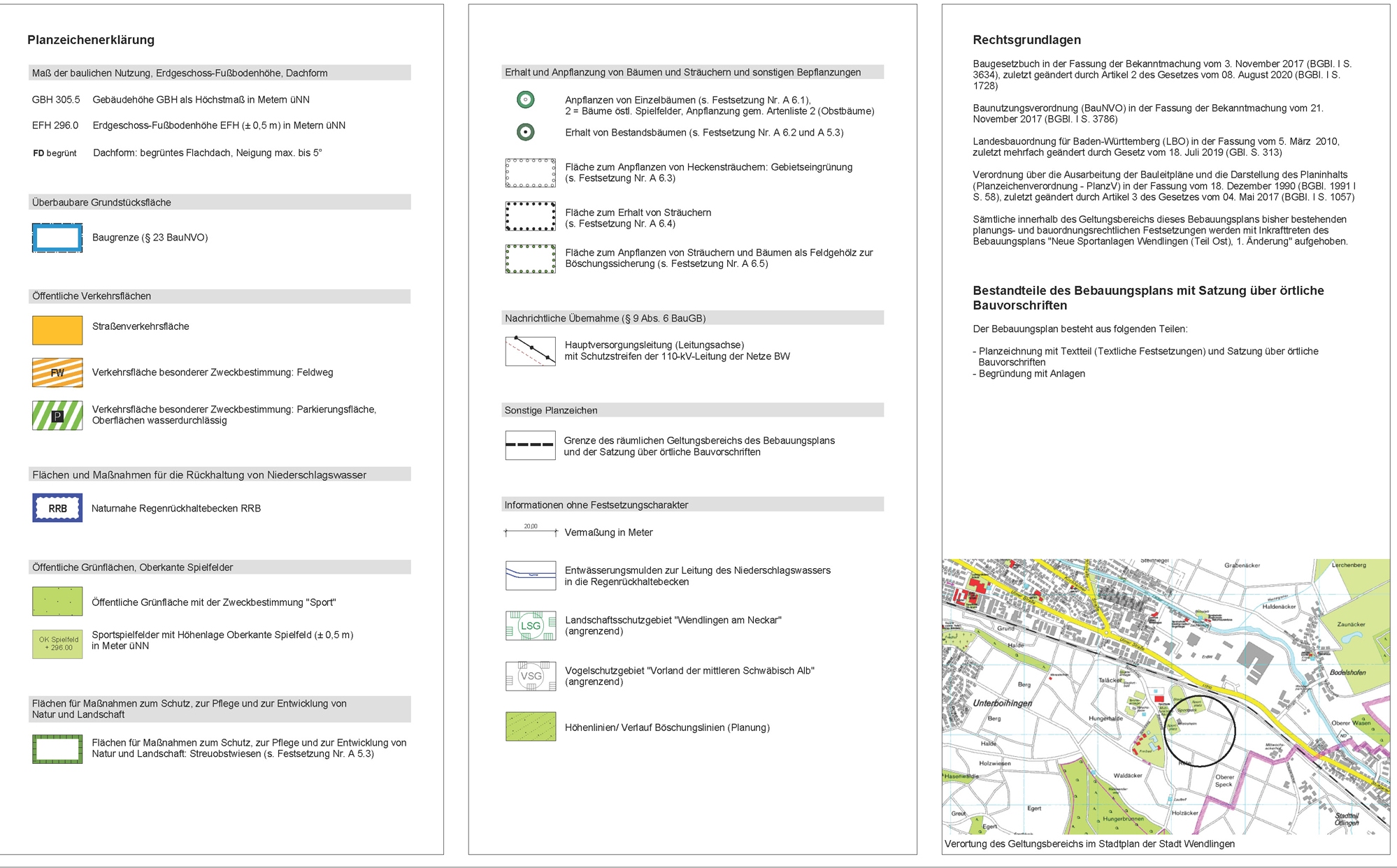Die Stadt Wendlingen möchte die Sportanlagen in Innenlagen von Wendlingen und Unterboihingen schrittweise aufgeben und stattdessen den Sportpark "Im Speck" nach Süden hin erweitern. Hierfür erarbeiteten wir den Bebauungsplan "Neue Sportanlagen Wendlingen".
